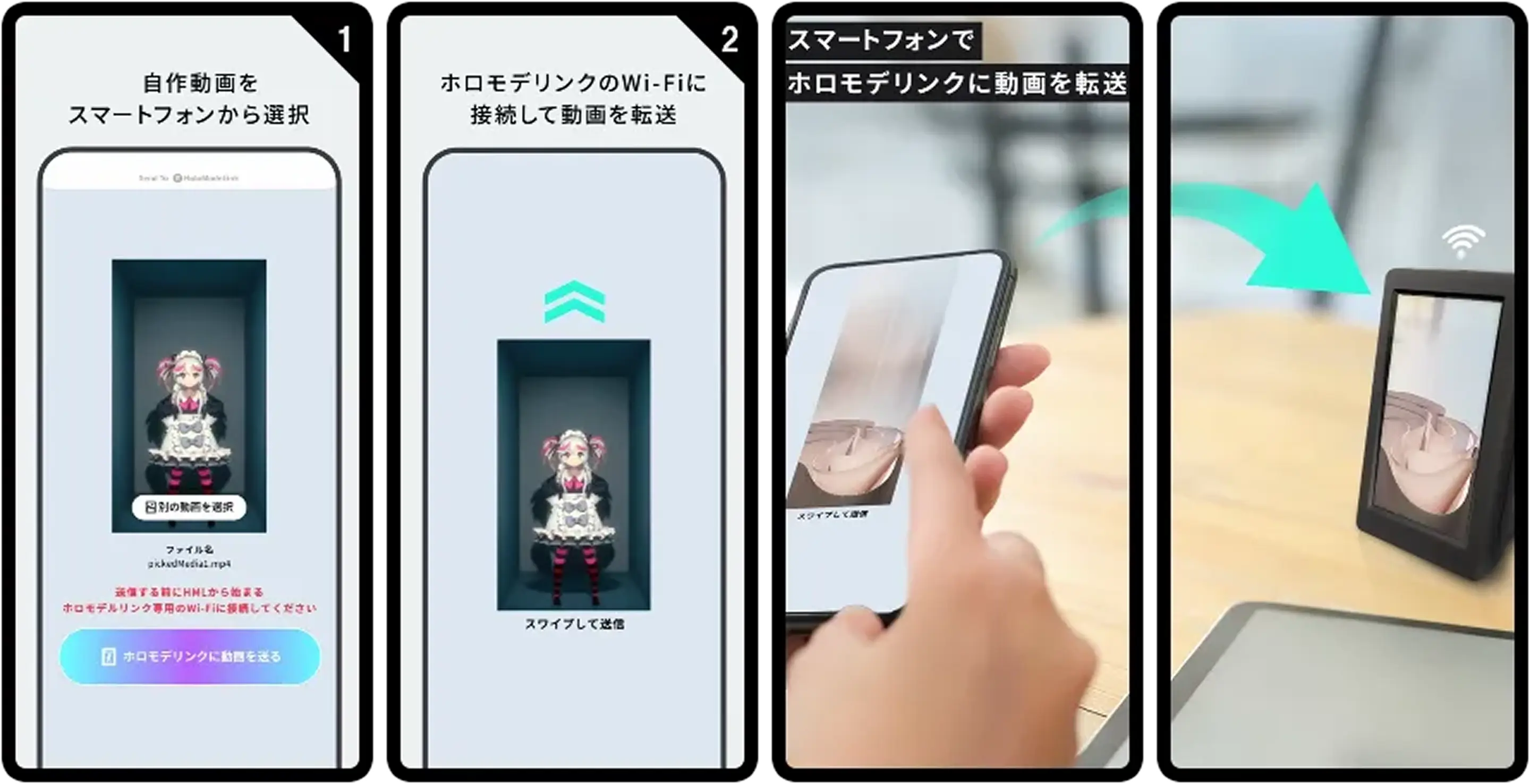ホロモデリンクはmp4の動画のみに対応しています。ご自身でコンテンツを作成する際は下記の仕様に合わせて動画を作成ください。動画の始めと終わりがシームレスに繋がるように作成すると、きれいに映像をループさせることができます。