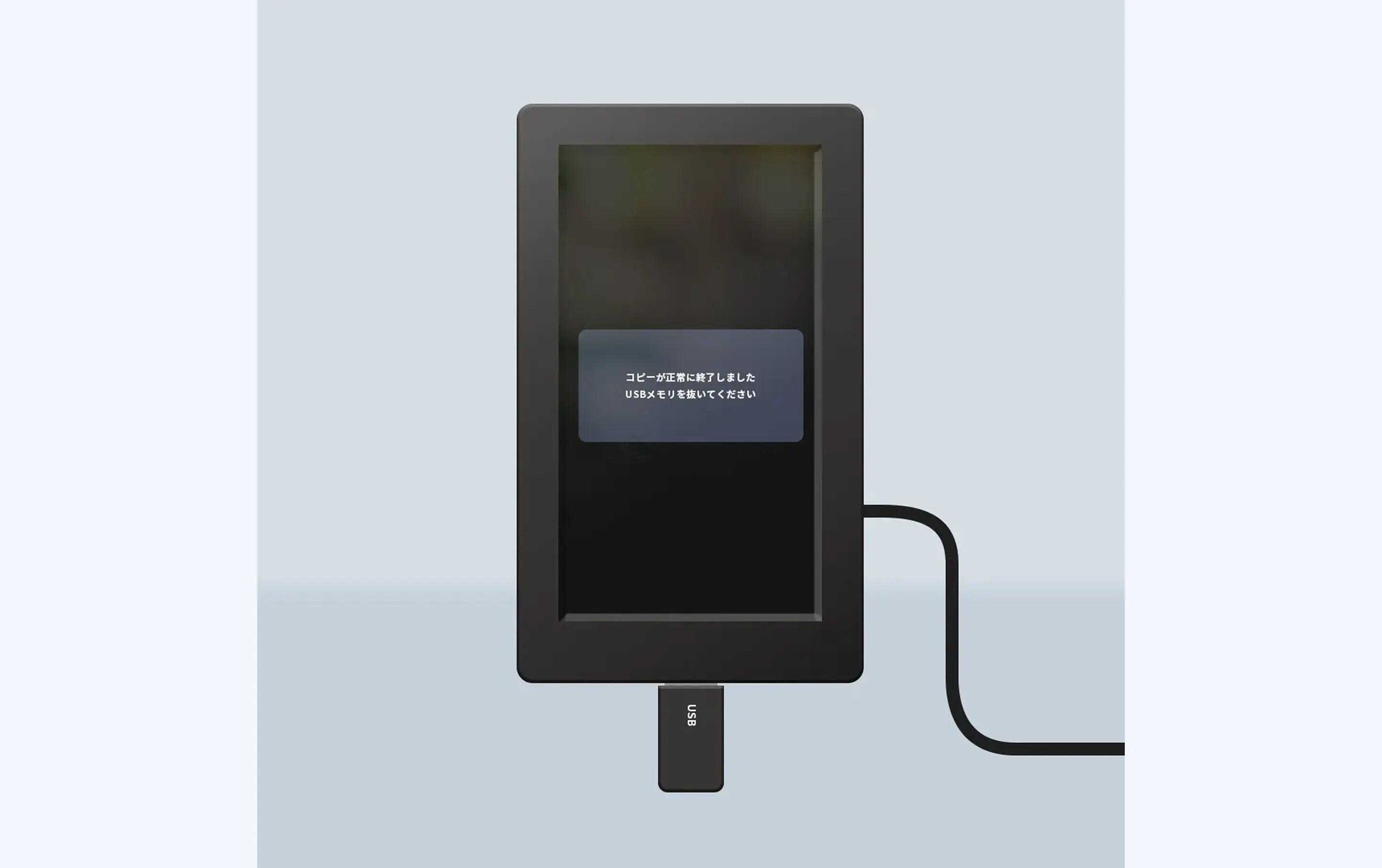 ③コピーが終了したら画面の案内に従ってUSBを抜いてください。作成した動画が映し出されていれば差し替え完了です。