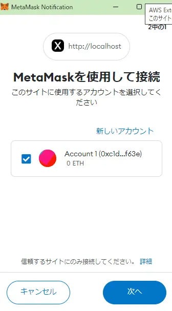MetaMaskのブラウザ拡張でポップアップが開きます。連携するアカウントを選択してください。